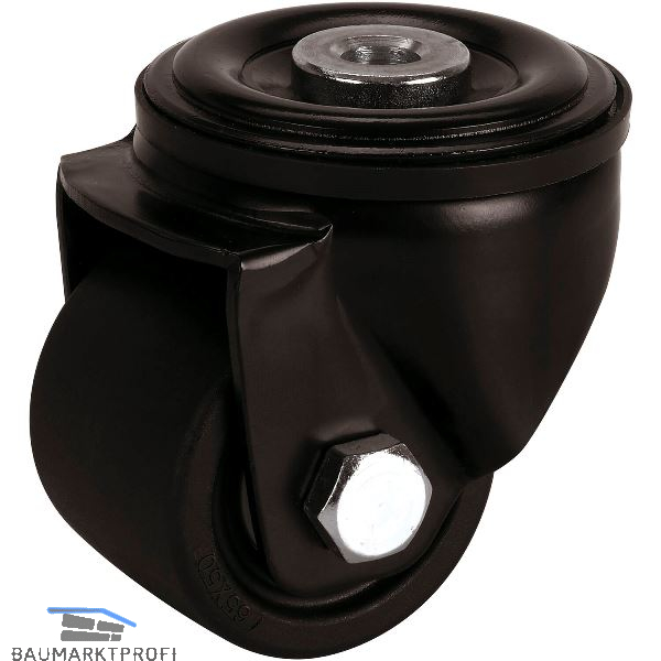 Schwerlast-Lenkrolle mit geringer Bauhöhe und Kunststoffrad, Gehäuse mit Rückenloch, verzinkt schwarz