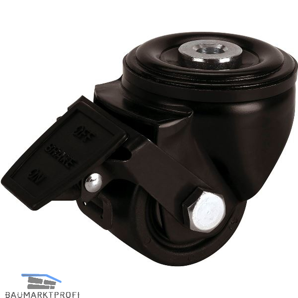 Schwerlast-Lenkrolle mit geringer Bauhöhe und Kunststoffrad, Gehäuse mit Rückenloch und Radfeststeller, verzinkt schwarz