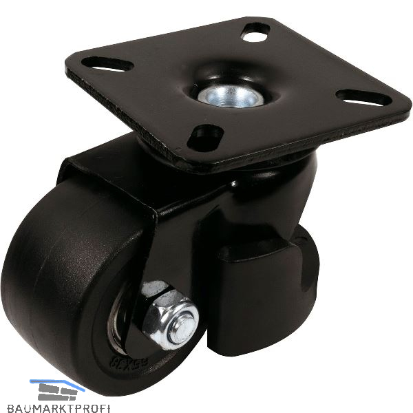 Einsatz überall dort, wo Objekte bewegt und höhenverstellt werden, wie im Industriebereich, bei Maschinen, Werkzeugtischen, Transportbehältern, Bühnen, Industriedruckern und Containern. Erleichtert die Mobilität schwerer Gegenstände. Durch Absenken des robusten Feststellfußes verliert das Rad den Bodenkontakt und wird durch diese Entlastung geschont (manuelle Hub-Feststellung); so wird das Objekt stabilisiert und ein Wegrollen verhindert. Rad und Felge aus Polyamid mit doppeltem Kugellager im Drehkranz. PA-Räder eignen sich für viele harte und glatte Oberflächen, wie Industrie-und Zementböden sowie Fliesen. Kraftschonendes Bewegen selbst schwerer Lasten dank des geringen Rollwiderstands.