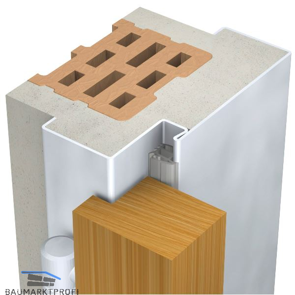 - Bodeneinstand: 60 mm, vorgerichtet für Alu-Anschlagschiene mit Dichtung und Alu-Trennschiene