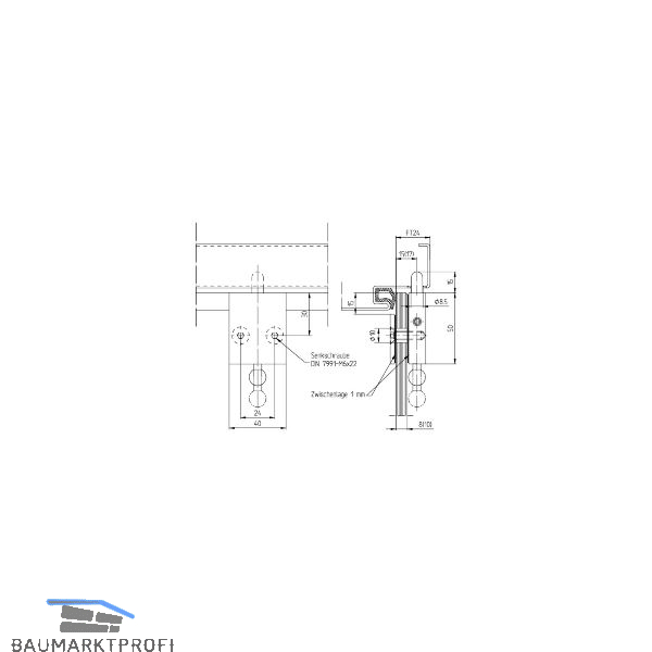 DORMA-Glas Feststellriegel 12.318 mit Bodenbuchse für 8-10mmGlas,silber eloxiert