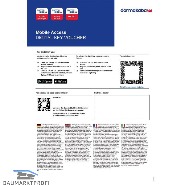Die Digitalen Schlüssel Voucher werden benötigt um digitale Zutritte anzulegen und zu verwalten. Der digitale Schlüssel kann nur einmalig aktiviert werden und ist an das Smartphone und die Rufnummer welche hinterlegt wird gebunden. Dies bedeutet dass der digitale Schlüssel auf keinem zusätzlichen Smartphone aktiviert kann und auch nicht an ein weiteres Handy- weiteren Nutzer weitergegeben werden kann.