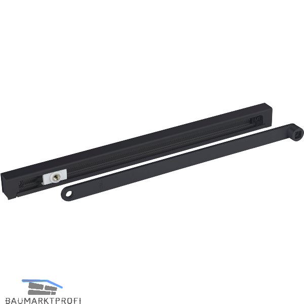 Bestehend aus Hebel, Gleitschiene, Gleitstück, Befestigungsstücke, Endkappen und Schrauben. Durch Langlöcher in den Befestigungsstücken ist es möglich, Abweichungen im Bohrbild auszugleichen und den Abstand zwischen Schließer und Gleischiene parallel zu halten.