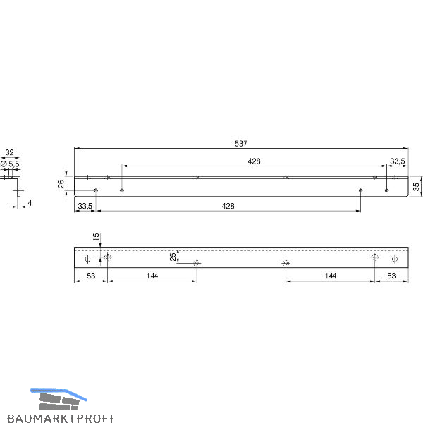 zur Anbringung der XEA Gleitschiene an Türrahmen mit tiefem Sturz ab 30 mm