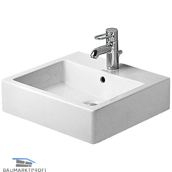 Marke: Duravit Type: 0454500027 Ausführung: rechteckig Material: Keramik Farbe: Weiß Einbauvariante: Aufsatz Unterbau ab (mm): 500 Außenmaß (mm): 500 x 470 x 175 Beckengröße (mm): 430 x 310 x 130 Grundausstattung: mit Überlauf, 1 Bohrloch, ohne Ventil, ohne Befestigung, ohne Siphon, Rückwand und Unterseite geschliffen