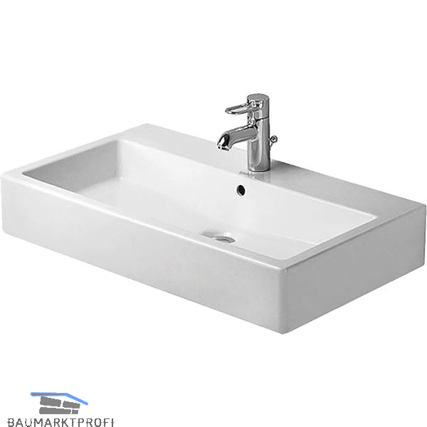 Marke: Duravit Type: 0454700027 Ausführung: rechteckig Material: Keramik Farbe: Weiß Einbauvariante: Aufsatz Unterbau ab (mm): 700 Außenmaß (mm): 700 x 470 x 165 Beckengröße (mm): 630 x 310 x 130 Grundausstattung: mit Überlauf, 1 Bohrloch, ohne Ventil, ohne Befestigung, ohne Siphon, Rückwand und Unterseite geschliffen