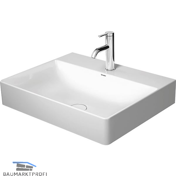 Marke: Duravit Type: 2353600071 Ausführung: rechteckig Material: Keramik Farbe: Weiß Einbauvariante: Aufsatz Unterbau ab (mm): 600 Außenmaß (mm): 600 x 470 x 145 Beckengröße (mm): 585 x 335 x 105 Grundausstattung: ohne Überlauf, 1 Bohrloch, inkl. Ventil mit keramischer Ventilabdeckung, mit Befestigung, ohne Siphon, Rückwand und Unterseite geschliffen