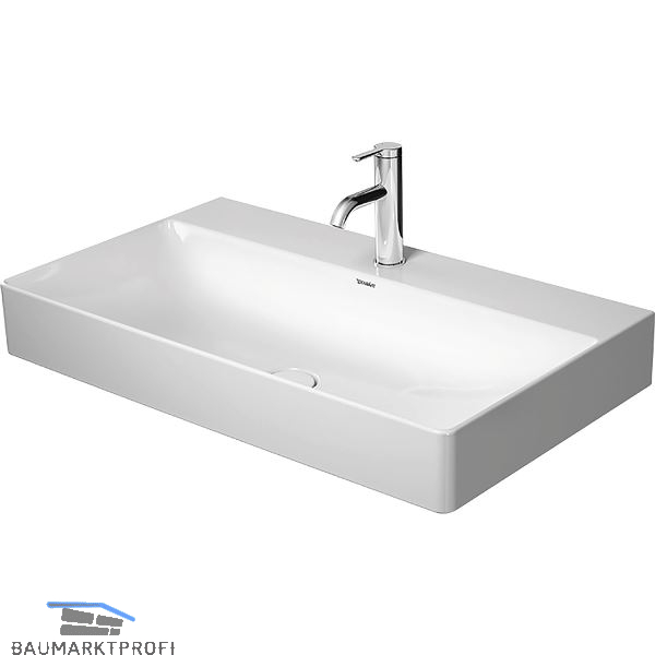 Marke: Duravit Type: 2353800071 Ausführung: rechteckig Material: Keramik Farbe: Weiß Einbauvariante: Aufsatz Unterbau ab (mm): 800 Außenmaß (mm): 800 x 470 x 145 Beckengröße (mm): 785 x 335 x 105 Grundausstattung: ohne Überlauf, 1 Bohrloch, inkl. Ventil mit keramischer Ventilabdeckung, mit Befestigung, ohne Siphon, Rückwand und Unterseite geschliffen