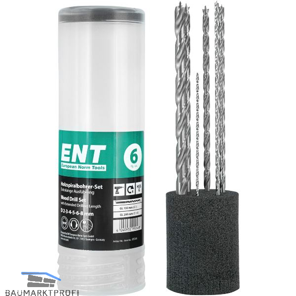 ENT Holzspiralbohrer-Kassette HSS-G Bohrer ø 2-8 mm 6-teilig