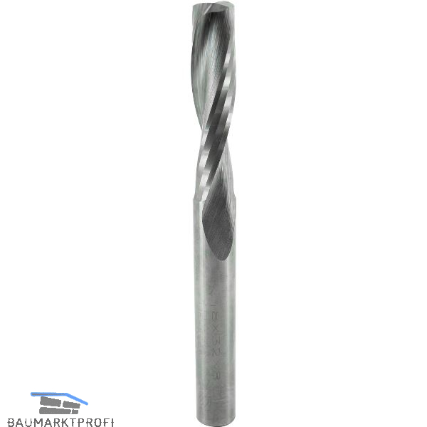 Mit geschliffener Spirale zum besseren Spanauswurf. Durch die spiralförmig geschliffene Schneide arbeitet der Fräser mit ziehendem Schnitt und erzeugt eine saubere Fräskante. Ebenso kann mit weniger Druck auf das Werkzeug gearbeitet werden, was gleichzeitig die Bruchgefahr verringert.