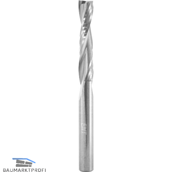 Mit geschliffener Spirale zum besseren Spanauswurf. Durch die spiralförmig geschliffene Schneide arbeitet der Fräser mit ziehendem Schnitt und erzeugt eine saubere Fräskante. Ebenso kann mit weniger Druck auf das Werkzeug gearbeitet werden, was gleichzeitig die Bruchgefahr verringert.