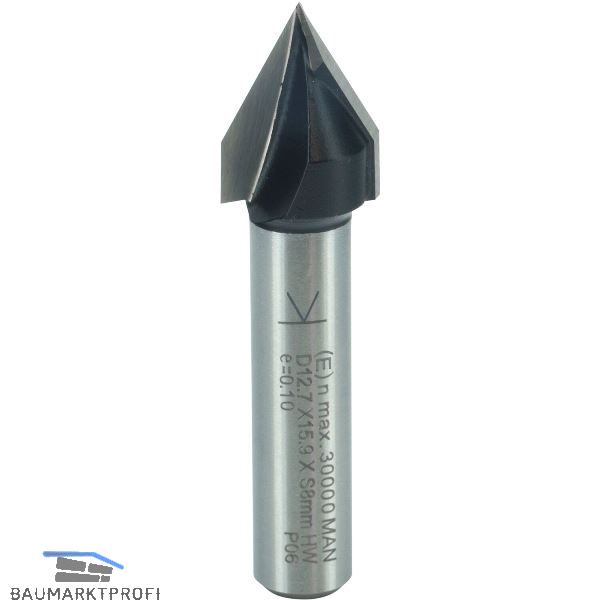 Zum Fräsen von V-Nuten und Ziernuten, ebenso als Schriftenfräser 60° verwendbar. Geeignet auch zum Anfasen von Harthölzern und Plattenwerkstoffen.