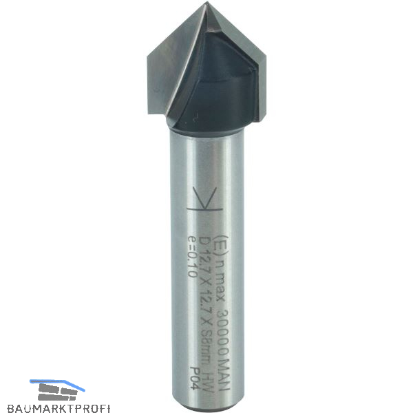Zum Fräsen von V-Nuten und Ziernuten, ebenso als Schriftenfräser 60° verwendbar. Geeignet auch zum Anfasen von Harthölzern und Plattenwerkstoffen.