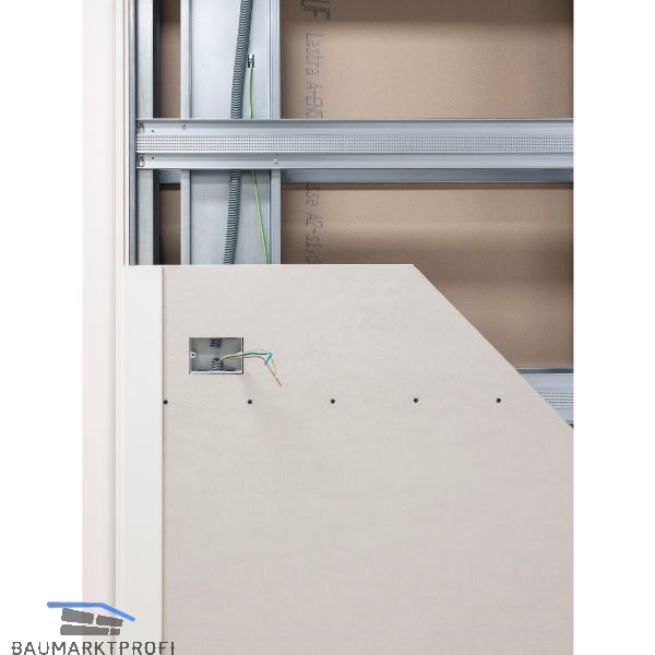Diese Ausführung ist optisch wandbündig und benötigt keine Zargenverkleidung. Flächenbündiges Schiebetürelement mit beidseitigen Kabelkanälen.