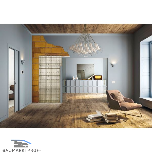 Ausführung für Zargenverkleidung. Montagefertiger Schiebetürkasten 2-flg. für Massivwand. Unico Luce ermöglicht die Installation von Schaltern, Kabeln, Steckdosen und sonstiger Haustechnik direkt in den Seitenflächen des Schiebetürkastens. Das Modell Unico Luce eignet sich beispielsweise ideal, um Lampen in der Seitenfläche Ihrer Schiebetür einzubauen.