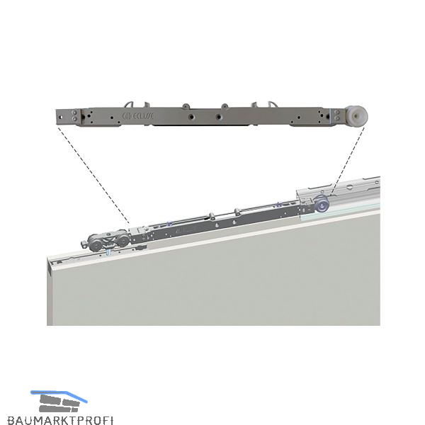 Der Einzugdämpfer wird vorteilhaft in der Laufschiene gefu?hrt, ohne auf dem Türblatt aufzutragen.