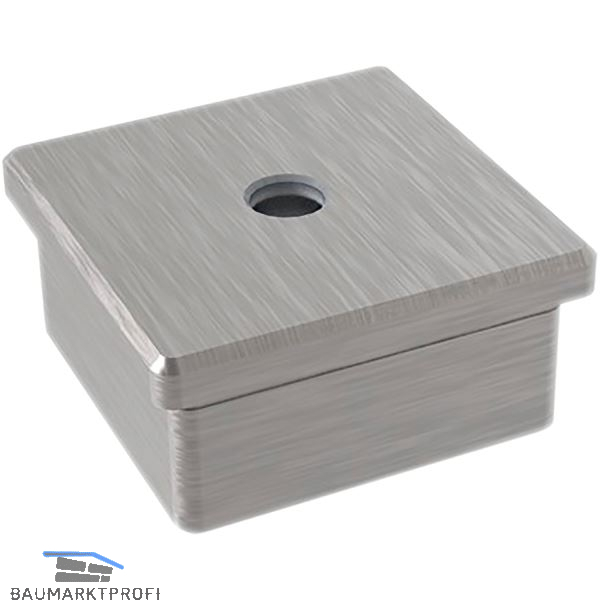 ECONOMY Endkappe eckig,hohl m.Mittelbohrung M8,40x40mm,Edelstahl geschliffen V2A