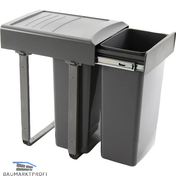 Robuste Auszüge aus verzinktem Stahl, Tragkraft 25 kg Komfortable Einzugsdämpfung Pflegeleichte Kunststoffteile - Abfallbehälter und Deckel können im Geschirrspüler gereinigt werden.