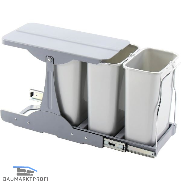 Robuste Auszüge aus verzinktem Stahl, Tragkraft 30 kg Pflegeleichte Kunststoffteile - Abfallbehälter und Deckel können im Geschirrspüler gereinigt werden.