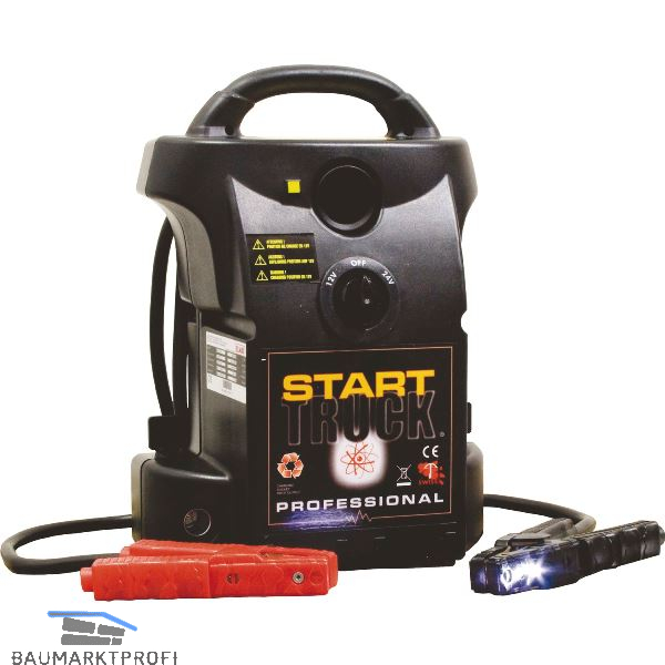 Universell einsetzbare Werkstattbatterie für eine Vielzahl von Anwendungen. Tragbares Starthilfegerät umschaltbar für 12/24 Volt, hohe Startleistung von 5000/2.500 A, mobile Stromquelle für 12/24 V-Verbraucher, I-Start 1800/900 A - Netzanschluss 230 V. LED-Beleuchtung. Zur Aufrechthaltung der Bordspannung während des Batteriewechsels.