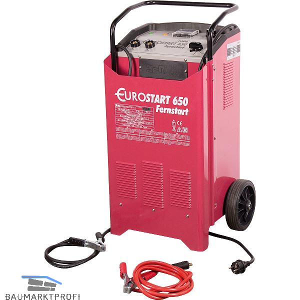 Laden und Starten aller 12 + 24 V Fahrzeuge mit 5 Meter Fernstartkabel, Starthilfe für PKW`s, bedingt auch bei Kleintransportern und Traktoren. Fahrbare Ausführung mit robusten Rädern. Für alle Nassbatterien Type WET/PB.