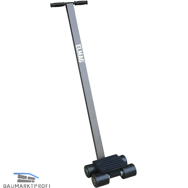 Das ELMAG-Transportfahrwerk ermöglicht das sichere Bewegen schwerer und sperriger Lasten. Mit einer 1 Meter langen Deichsel, einer drehbaren Plattform und rutschfester Gummimatte bietet es stabile Handhabung und Schutz. Ideal für enge Kurven und unterschiedliche Lasten.