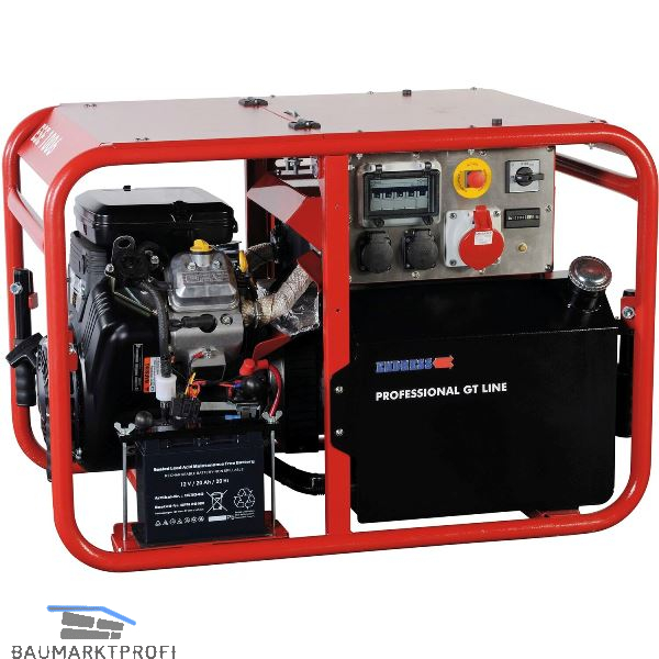 2-Zylinder 4-Takt OHV Benzinmotor. Mit Reversierstarter, Ölmangel-Abschaltautomatik, Generator-Überlastschutz und Großtank für lange Laufzeiten. Schallpegel: 97 dB(A).