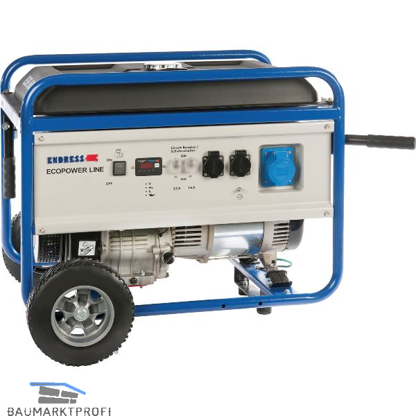 1-Zylinder 4-Takt OHV Benzinmotor. Das kompakte Format macht die Ecopower Line zu einer hervorragenden Stromquelle für unabhängiges Arbeiten im privaten Bereich. Mit Reversierstarter und Ölmangel-Abschaltautomatik, Generator-Überlastschutz, AVR Automatische Spannungsregelung, 4 in 1 Display = V / Hz / h / Ölmangel, Großtank für lange Laufzeiten. Tankfüllanzeige, Handgriffe. Schallpegel: 97 dB(A). Mit Radsatz.