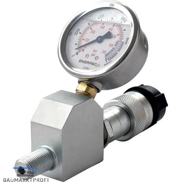 Das Set mit Manometer und Anschluss ermöglicht problemlose Druckablesung für sicheren Betrieb. 45º angewinkelter Manometer für optimale Sicht. Schlankes und schmales Design. Maximal gesteuerte Lastbewegung. Glyzerin-gedämpfter Manometer mit Doppel-Skala.