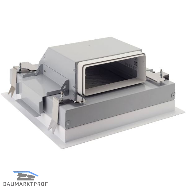 Dieses Zubehör ermöglicht einen Umluftbetrieb bei Falmec Deckenlüftern mit Slim-Motor. Die Luft wird an der Unterseite einer abgehängten Decke in den Raum rückgeführt. Dieser Bausatz wird bündig in die Zwischendecke eingebaut und fügt sich, dank des weiß lackierten Stahlrahmens und der weiß satinierten Innenplatte harmonisch in die Küchenumgebung ein.