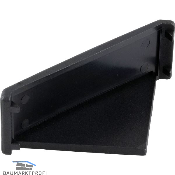 Zur rechtwinkligen Verbindung von Profilen und Flächenelementen. Die offene Seite des Winkels kann durch die Abdeckkappe verschlossen werden.