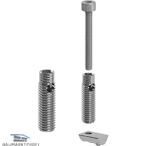 Zur schnellen und stabilen Verbindung von zwei Aluminiumprofilen ohne Profilbearbeitung. Selbstschneidendes Gewinde.