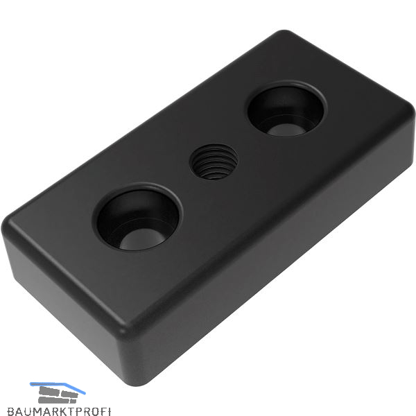 Zur Aufnahme von Stellfüßen, Rollen, Haken oder ähnlichen Bauteilen. Stirnseitig mit den Profilen verschraubbar.