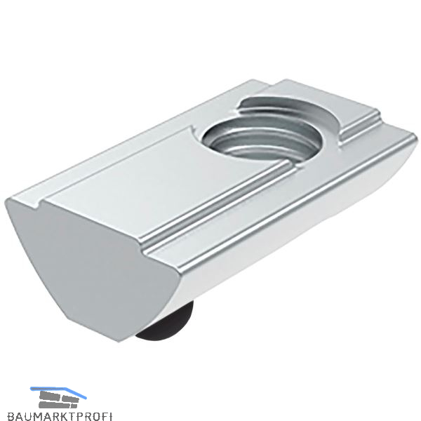 Einschwenkbarer Nutenstein mit Führungssteg und Federkugel.
