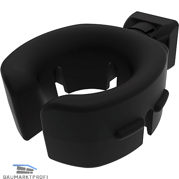 Einsatzfertiger Schrauberhalter für eine Vielzahl handelsüblicher Akkuschrauber, 360°drehbar. Für Aluminiumprofile zum Organisieren von Arbeitsplätzen.