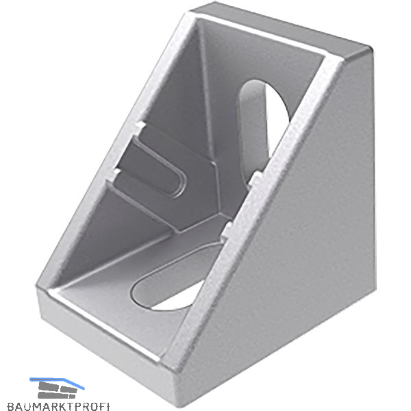 Zur rechtwinkligen Verbindung von Profilen und Flächenelementen. Die offene Seite des Winkels kann durch die Abdeckkappe verschlossen werden.