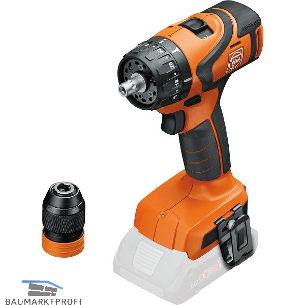 2-Gang Akku-Bohrschrauber mit bürstenlosem FEIN PowerDrive Motor und QuickIN Schnittstelle. Vollmetall-Getriebe mit 2 Gängen perfekt geeignet für Bohren bis 13 mm und Gewindebohren bis M10 in Metall. QuickIN Vollmetall-Bohrfutter (120 Nm) mit hartmetallbestückten Spannbacken und hohen Spannkräften. Mechanische Drehmomenteinstellung. Kompakte Bauweise. Die AMPShare Schnittstelle ermöglicht fast 50 % mehr Verschraubungen (ca. 1 300 Verschraubungen Ø 5 x 40 mm in Holz) pro Akku-Ladung bei bestehender FEIN Qualität. (ProCORE 4 Ah). Kompatibel mit Bosch Professional 18 V Akkus seit 2008 und AMPShare Akkus. „Electronic Cell Protection" ECP schützt den Akku vor Überlastung, Überhitzung und Tiefentladung.
