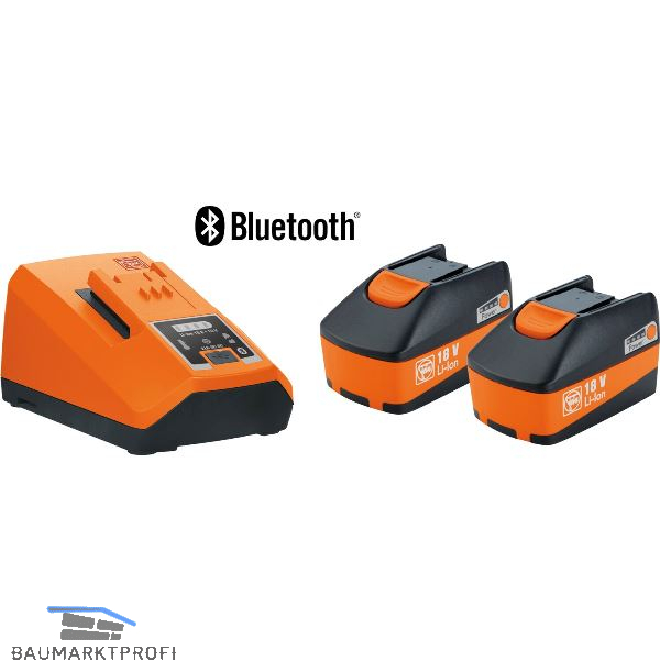Lieferung inkl. 2 x 18 Volt / 6,0 Ah Li-Ion Schiebe-Akkus und Schnellladegerät ALG 80 BC.