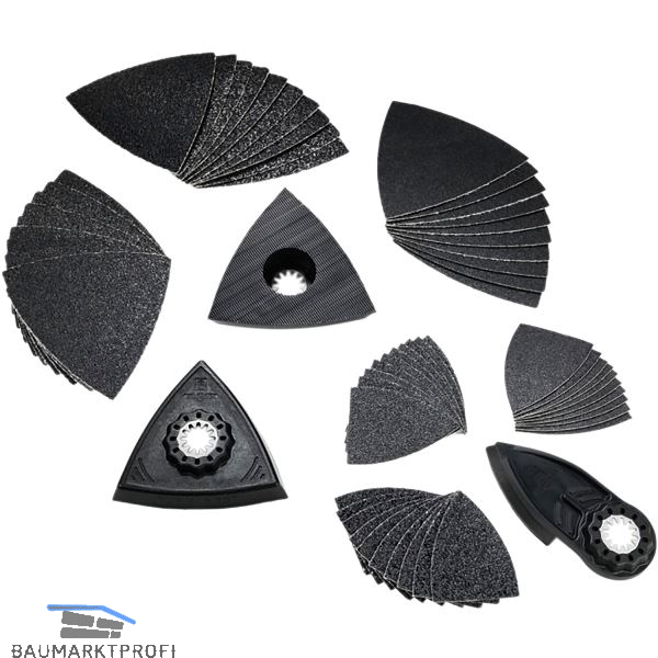 63-teiliges Zubehör-Set, zum Schleifen in Ecken und an Kanten.