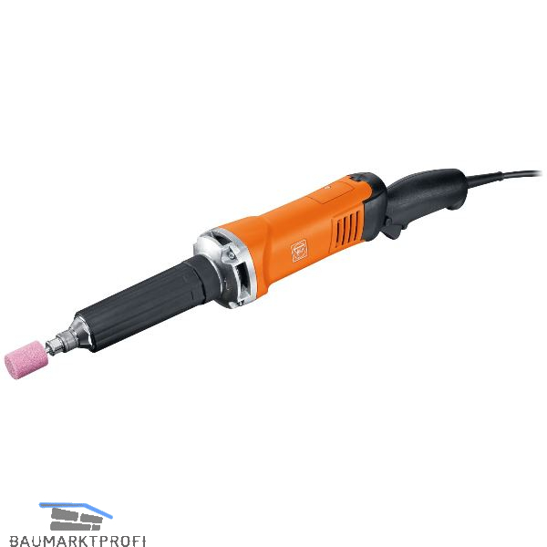 Leistungsstarker Geradschleifer mit ErgoGrip für den Werkzeug- und Formenbau mit mittlerer Drehzahl. Schleifkörper Ø max. 45 mm. Elektronische Drehzahlvorwahl, Tachoelektronik, elektronischer Überlastschutz, austauschbarer Gummi-Halsüberzug. Langer, schlanker Hals ermöglicht tiefes Eintauchen in Werkstücke (z. B. Innenschleifen von Rohren). Spannhals-ø 43 mm.