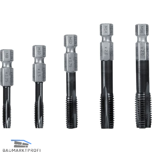 Lieferung inkl. Maschinengewindebohrer M8 x 1,25 mm / M10 x 1,5 mm / M12 x 1,75 mm / M14 x 2 mm / M16 x 2 mm,in zylindrischer Kunststoffverpackung.