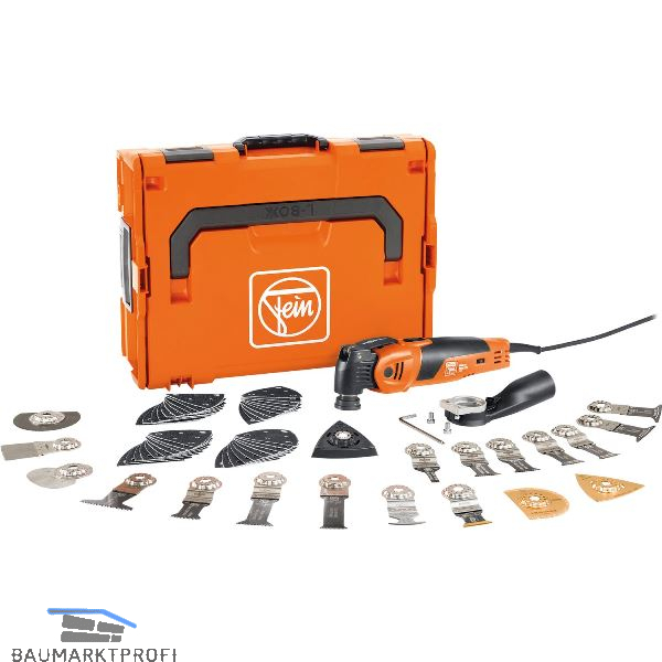Lieferung inkl. 2 E-Cut Standard-Sägeblätter curved (35 mm), 2 E-Cut Standard-Sägeblätter curved (65 mm), E-Cut Precision BIM-Sägeblatt (35 mm), E-Cut Precision BIM-Sägeblatt (65 mm), E-Cut Long-Life Sägeblatt (10 mm), 2 E-Cut Long-Life Sägeblätter (35 mm), E-Cut Long-Life Sägeblatt (32 mm), E-Cut Long-Life Sägeblatt (42 mm), E-Cut Carbide Pro Sägeblatt (32 mm), Sägeblatt segmentiert (Ø 85 mm), HM-Sägeblatt (Ø 75 mm), HM Raspel (Dreieckform), Spachtel, Schneidmesser Pilzform, Multimesser, Schleifplatte gelocht, je 10 Schleifblätter gelocht (K 60, 80, 120, 180), Absaugvorrichtung, in L-BOXX 136.
