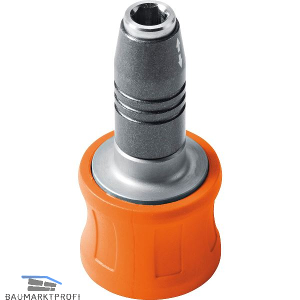 1/4 in Innensechskant Bithalter mit praktischer Einhandbedienung und starkem Neodym-Magnet. Der Schrauber wird durch den Bithalter leichter und kürzer.