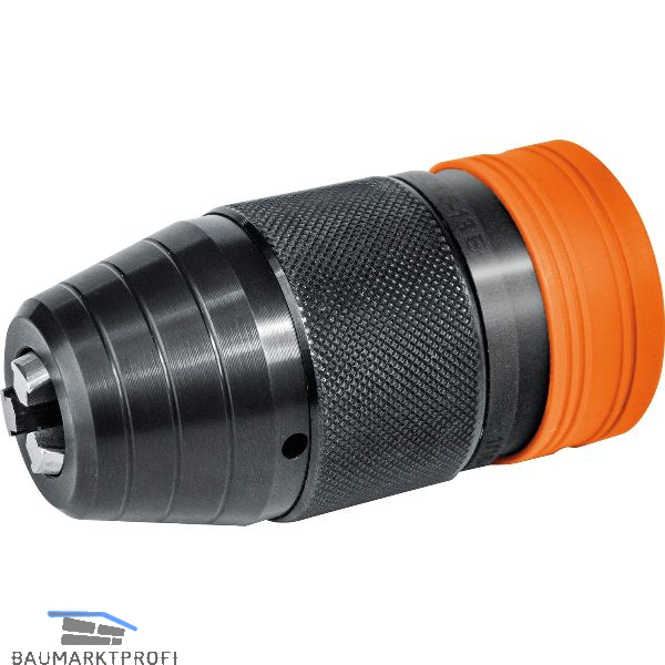 Selbsttätig nachspannendes Flachbacken-Bohrfutter aus Vollmetall. Verhindert Durchdrehenvon Spiralbohrer und Gewindebohrer. Spannbereich 1,5 - 13 mm. Präzises Arbeiten durchhohe Rundlaufgenauigkeitvon bis zu 0,35 mm. Kompatibel mit allen FEIN Akku-Schraubern mit QuickIN / QuickIN MAX Schnittstelle.