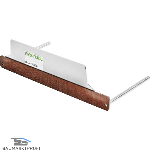 Passend zu TS 60. Auch als Schattenfugenanschlag einsetzbar. Abdeckung für verbesserte Staubabsaugung. Verwendbar auch mit Führungsschiene. Geringe Reibung durch seitliche Gleitfläche aus Hartgewebe.