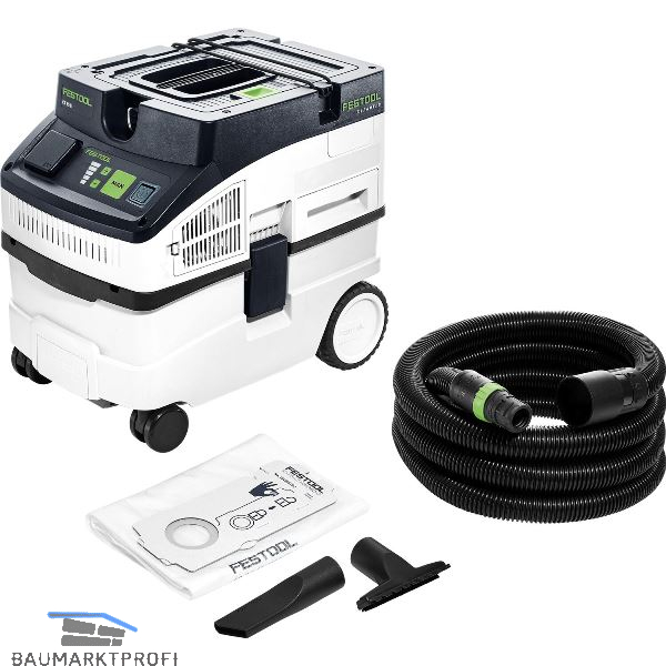 Lieferung inkl. Fugendüse D 36 FD-150, Hauptfilter HF-CT Comp, Polsterdüse D 36 PD, Saugschlauch Ø 27/32 x 3,5 m, SELFCLEAN Filtersack SC-FIS-CT, im Karton.