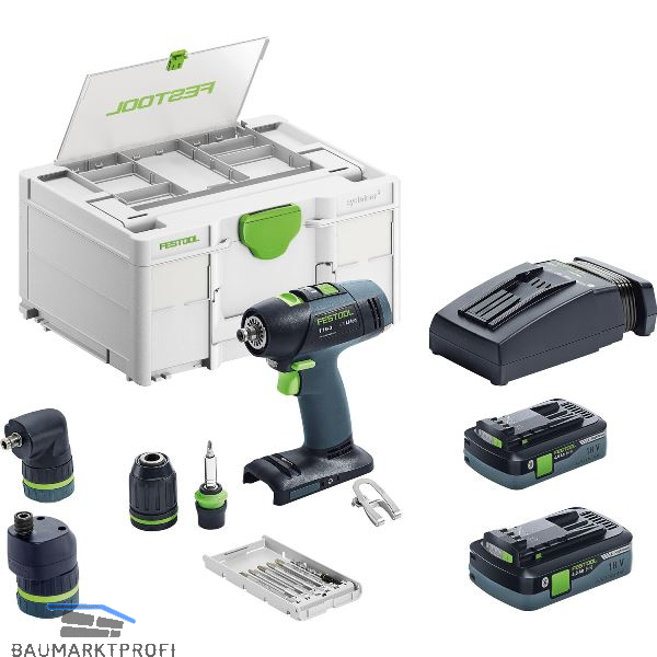Lieferung inkl. 2x Akkupack BP 18 Li 4,0 HPC-ASI, Bitkassette BKS SYS3 D5 PZ TX 100 CE, Schnellladegerät TCL 6, Bit PZ2, CENTROTEC Magnet-Bithalter BH 60 CE-Imp, CENTROTEC Werkzeugfutter, FastFix Schnellspannbohrfutter 13 mm KC 13-1/2-K-FFP, FastFix Exzentervorsatz, FastFix Winkelvorsatz, Gürtelclip, im Systainer SYS3 DF M 187.