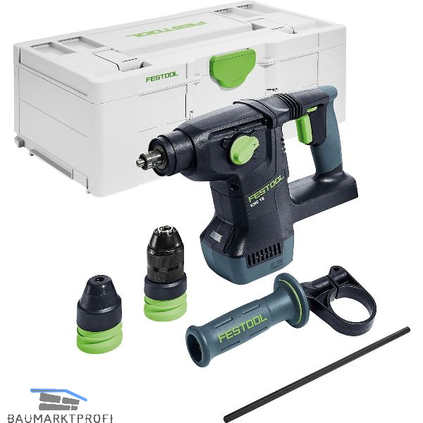 Lieferung inkl. Bohrfutter C SDS KHC, Schnellspannborhfutter KC 13 KHC, Tiefenanschlag, Zusatzhandgriff AH-50/181 KHC, in Systainer SYS3 L 187