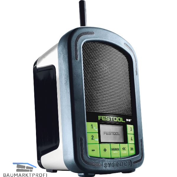 Klingt immer gut. Beim Arbeiten, und beim Telefonieren. Leicht, kompakt, leistungsstark. Das Baustellenradio passt auf jede Fensterbank und vereint kompakte Abmessungen und niedriges Gewicht mit perfektem Klang. Telefon-Freisprecheinrichtung. Zum Empfang von analogen (FM) und digitalen (DAB+) Sendern. Robustes Kunststoffgehäuse, wasserfester 2,5 Zoll Neodymium-Lautsprecher, flexible Antenne. Dank Bluetooth-Schnittstelle und integrierte Freisprechfunktion können Sie neben Ihren bevorzugten Radiosendern auch die Lieblingstitel von Ihrem Smartphone hören, und sind dabei für Ihre Kunden immer erreichbar. Betrieb mit Festool Schiebeakkus von 10,8 - 18 Volt, sowie Netzteil möglich. Aux-IN-Engang 3,5 mm zum Anschluss mobiler Endgeräte wie Smartphone, MP3-Player, Tablet. Intuitive Bedienung durch große Tasten und beleuchtetes LCD-Display. Radio-Frequenzen FM (UKW) 87,5-108 Mhz, Lautsprecher 10 Watt, 2 x 4 Senderspeicher.