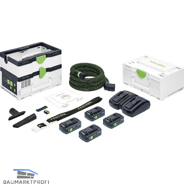 Lieferung inkl. Hauptfilter, Filtersack montiert, Saugschlauch glatt Ø 27 x 3 m-AS/CT mit Winkeldrehausgleich saugerseitig, Schlauchdepot, SYS-Dock mit T-LOC Funktion, Polsterdüse D 36 PD, Fugendüse D 36 FD-150, Tragegurt SYS-CT, Sauger-Fernbedienung CT-F I, Energie-Set SYS 18V 4x4,0/ Ladegerät TCL 6 DUO.